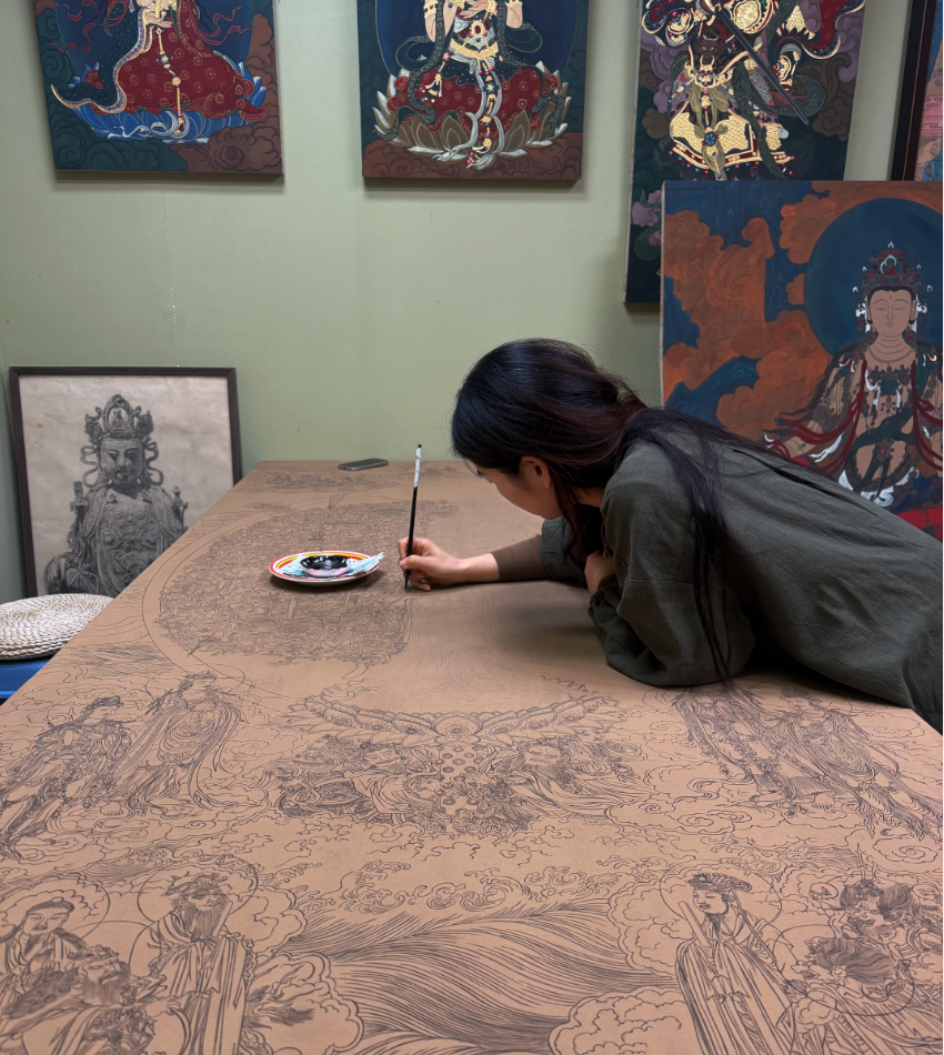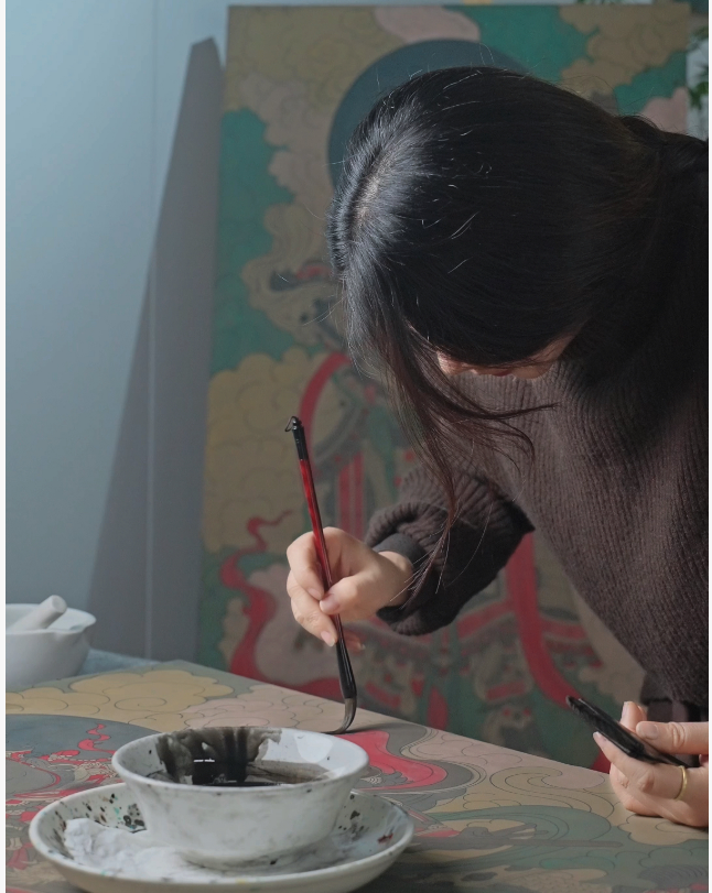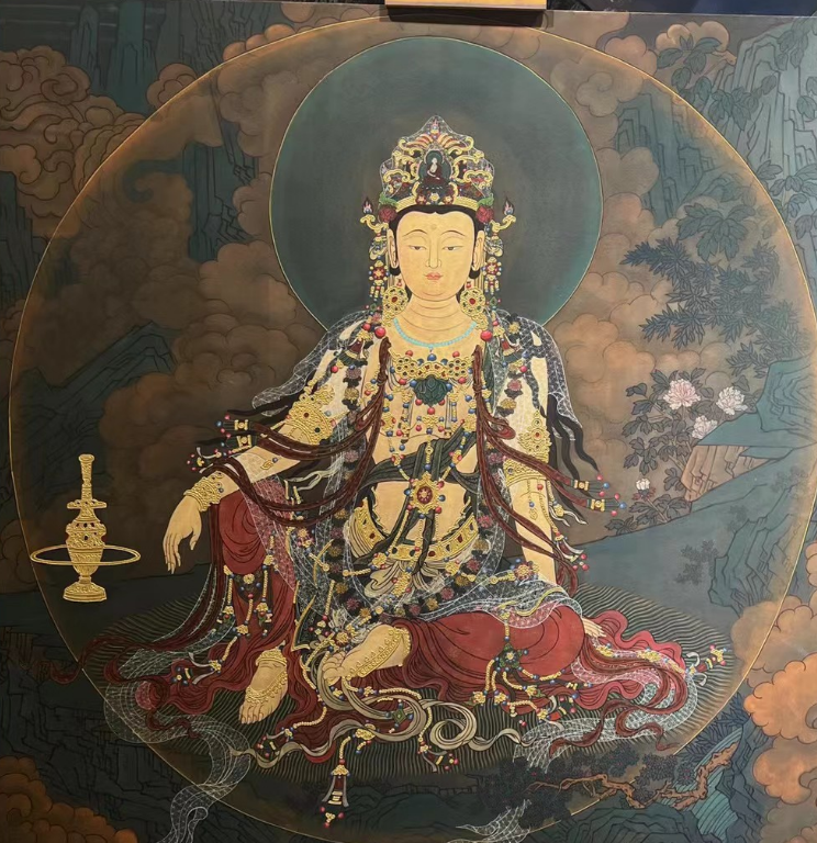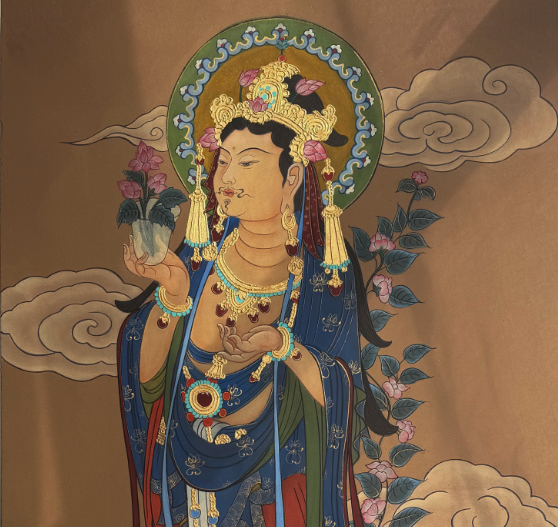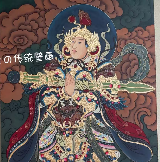 把中国传统的非物质文化遗产——传统壁画:岩彩画(泥板画),